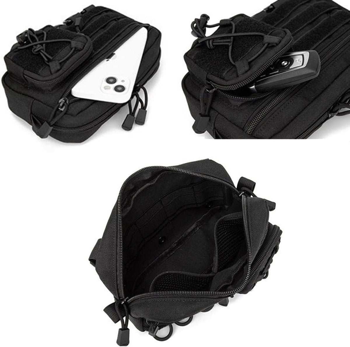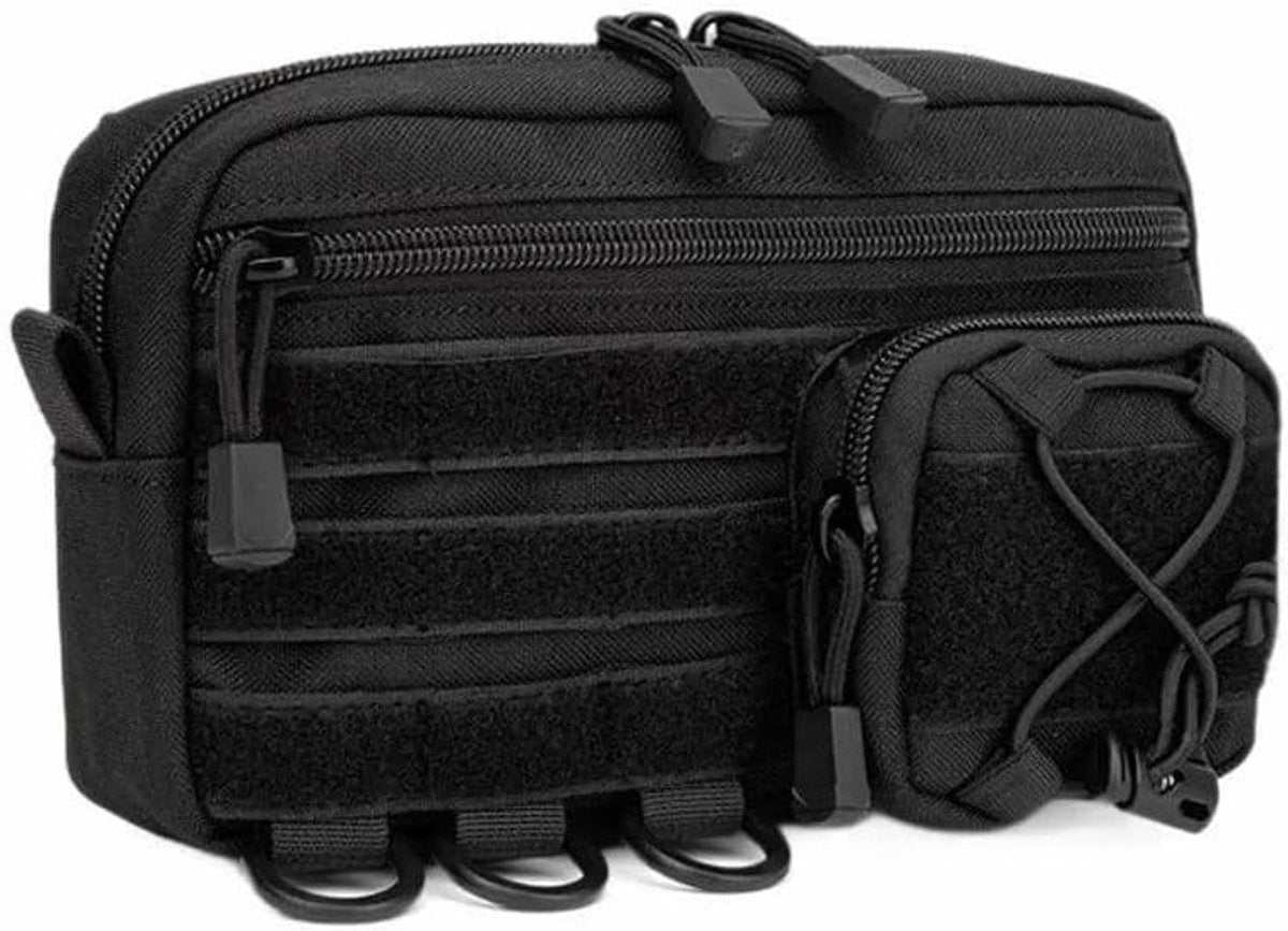 Durable Material: Made of 1000D Oxford fabric, tear-resistant, wear-resistant, and waterproof, ensuring long-term use in various harsh conditions. Large Storage Space: The bag includes a main compartment with two grids and several elastic straps, an additional pocket for storing items such as power banks, and a small front pocket for storing car keys or shotgun ammo, meeting various storage needs. Lightweight and Portable: The overall dimensions are 0 x 5.8 x 21.8 cm, weighing only 230 g, and can be easily attached to a belt or tactical backpack for everyday use. Multifunctional: Suitable for use as a vest bag, backpack, tactical fanny pack, spike bag, IFAK bag, small fanny pack, tool bag, etc., suitable for bicycles, cars, and even service dog vests. Looking for a reliable and versatile storage solution for your daily needs or tactical gear? Look no further! Our tactical first aid kit with webbing attachment and tool bag meets all your needs. Product dimensions: 22 cm L x 4.8 cm W x 12 cm H. Weight: 230 g. Multifunctional carrying bag: The fanny pack organizes essentials such as multi-tools, flashlights, cell phones, and keys in a compact design. Versatile and adaptable, it can be used as a dump bag, tactical bag, fanny pack, or pocket organizer, easily meeting various carrying needs. The horizontal carrying bag has a convenient layout with compartments and offers plenty of storage space. It provides room for various tools, keys, walkie-talkies, maps, flashlights, and other everyday items. This durable tactical bag is made of polyester, is waterproof and tear-resistant, and perfect for camping, hiking, and tactical missions. Equipped with an external attachment system for everyday use.