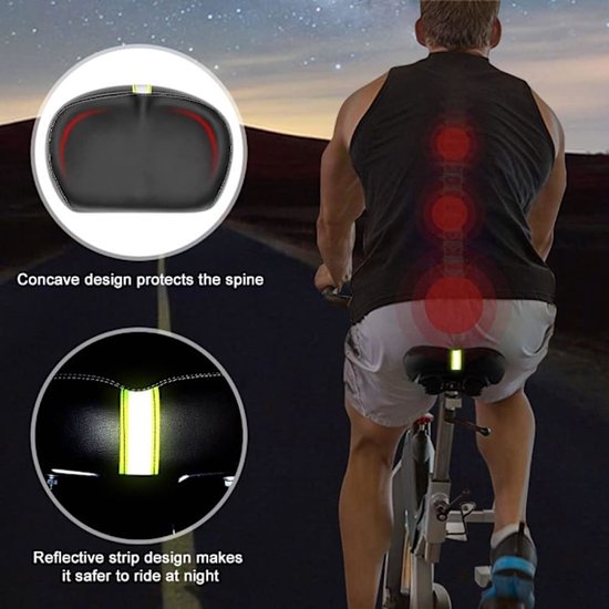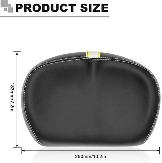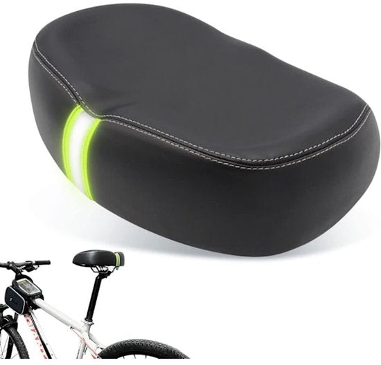 Comfortable and spacious bicycle saddle with memory foam padding, suitable for most bicycles.