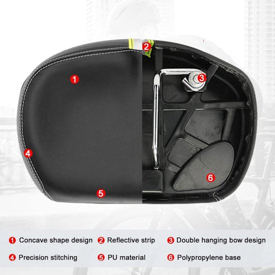 Wide bicycle saddle: This extra-wide bicycle saddle with a dual suspension system provides a comfortable riding experience for both men and women.