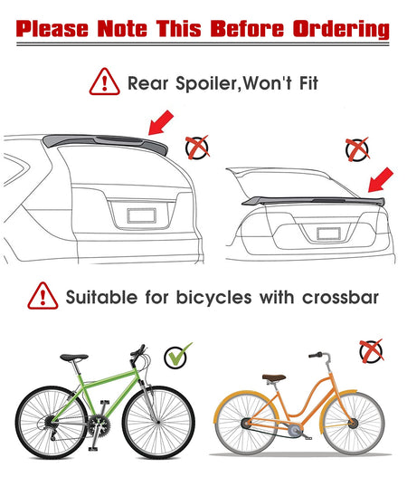 The bike carrier design is suitable for most cars, SUVs and minivans. The durable trunk bike rack can hold your bike in place so you can reach your destination safely.