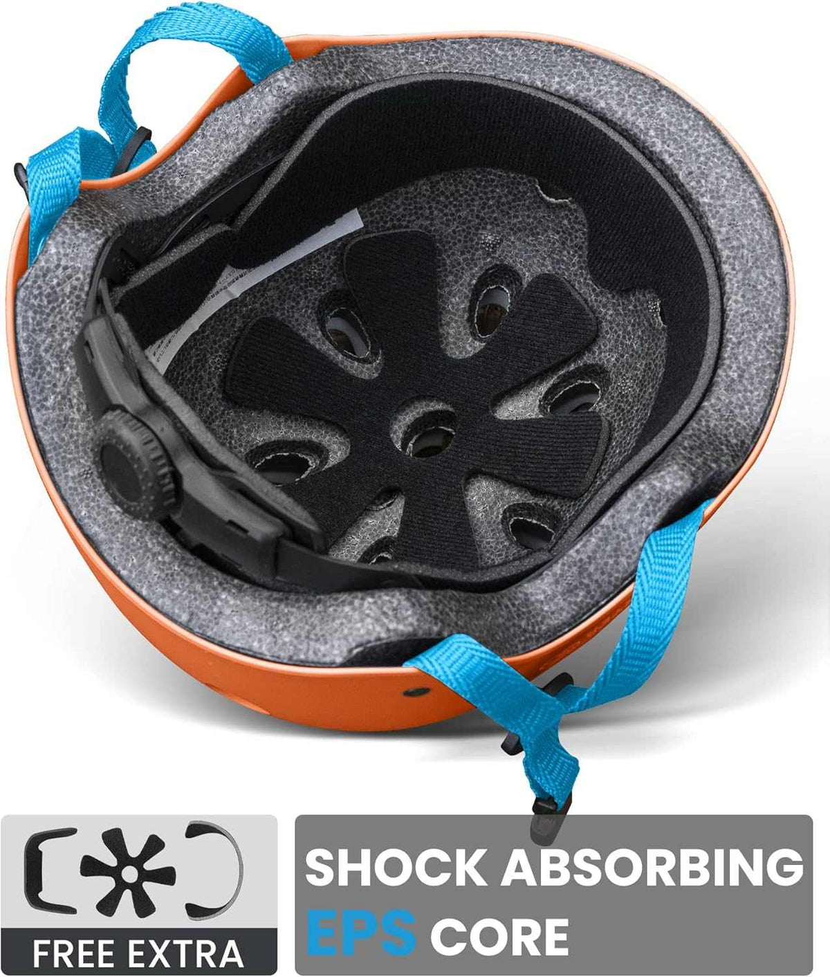 Protect kids with both comfort and impact resistance. REINFORCED ABS SHELL THICKENED SHOCK-ABSORBING EPS CORE provides solid protection when skateboarding, rollerblading, cycling and etc.