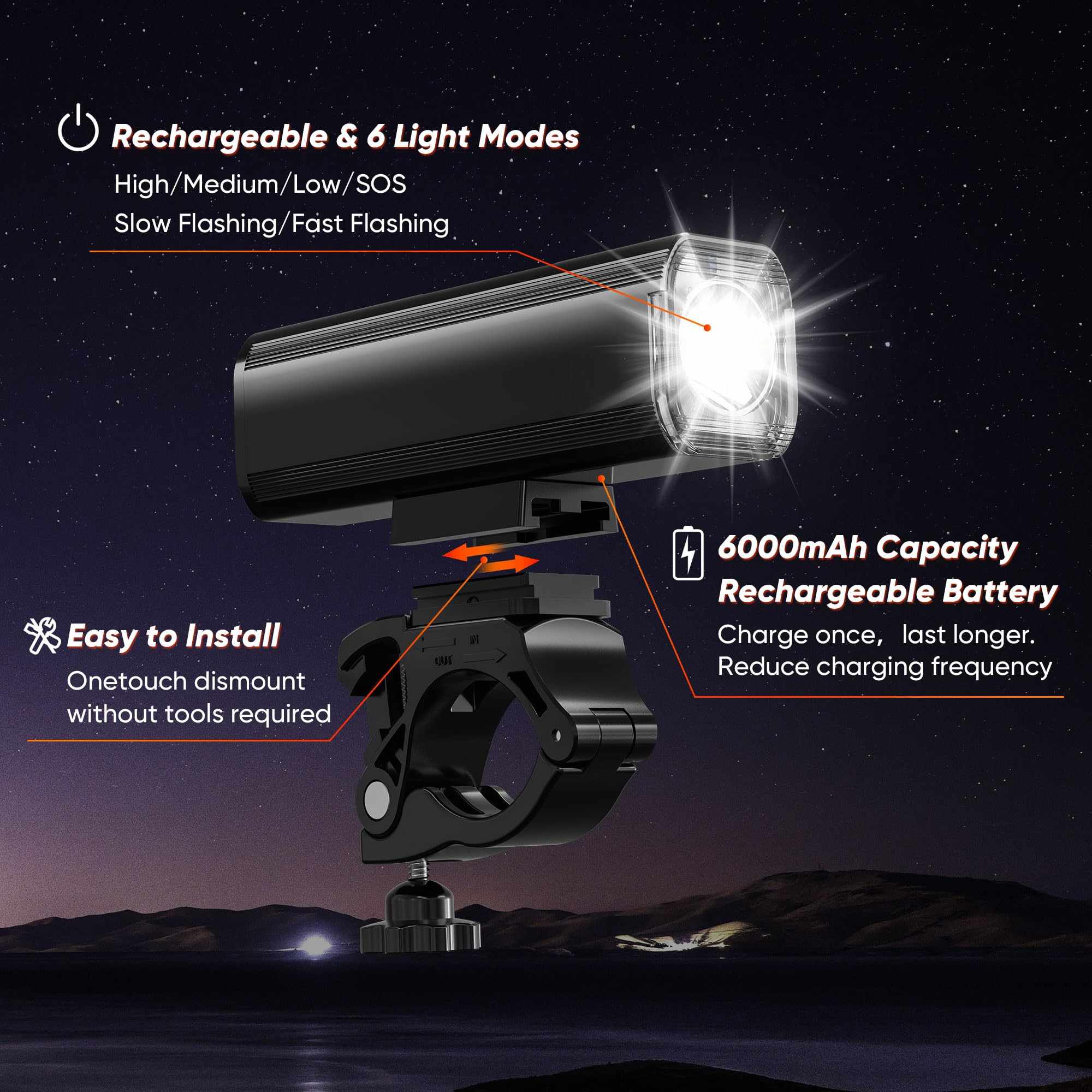 - Compact Easy Installation: Dimensions: 10.5 x 2.8 x 2.5 cm (headlight); fits 2232mm handlebars; tool-free one-touch mount.