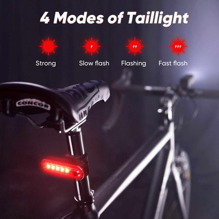 - 6+4 Lighting Modes: Front light includes High/Medium/Low/SOS/Slow Flash/Fast Flash; rear light has Strong, Slow Flash, Flashing, Fast Flash.