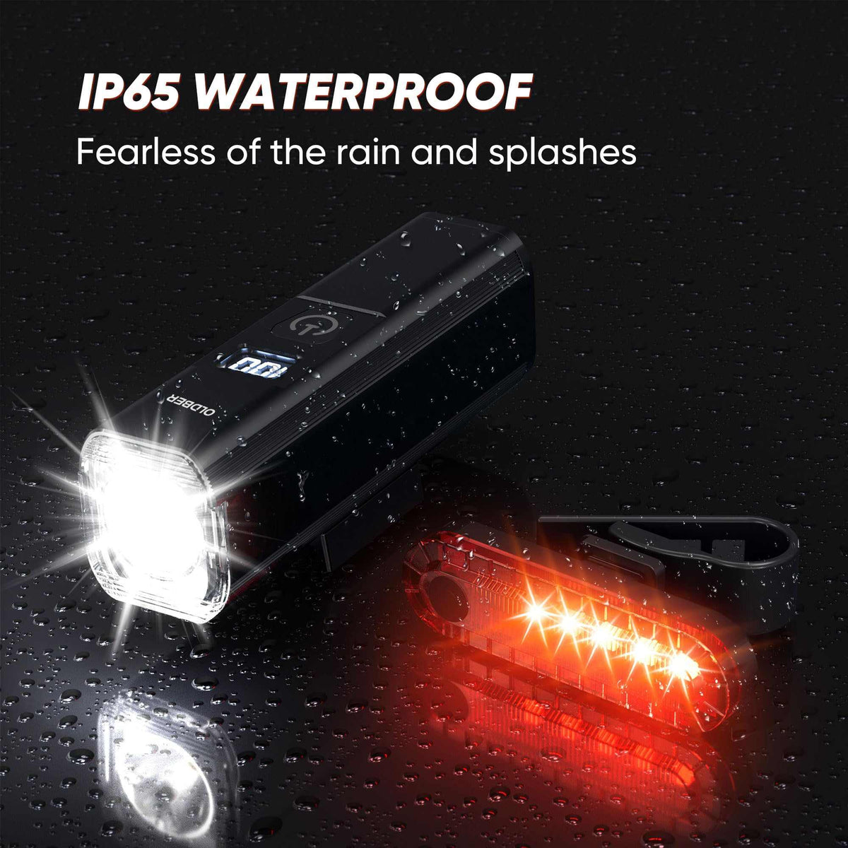 Ultra-Bright 1200 Lumen Bike Light Set with USB Rechargeable Headlight Tail Light IP65 Waterproof Cycling Lamp for Night Riding (Black)